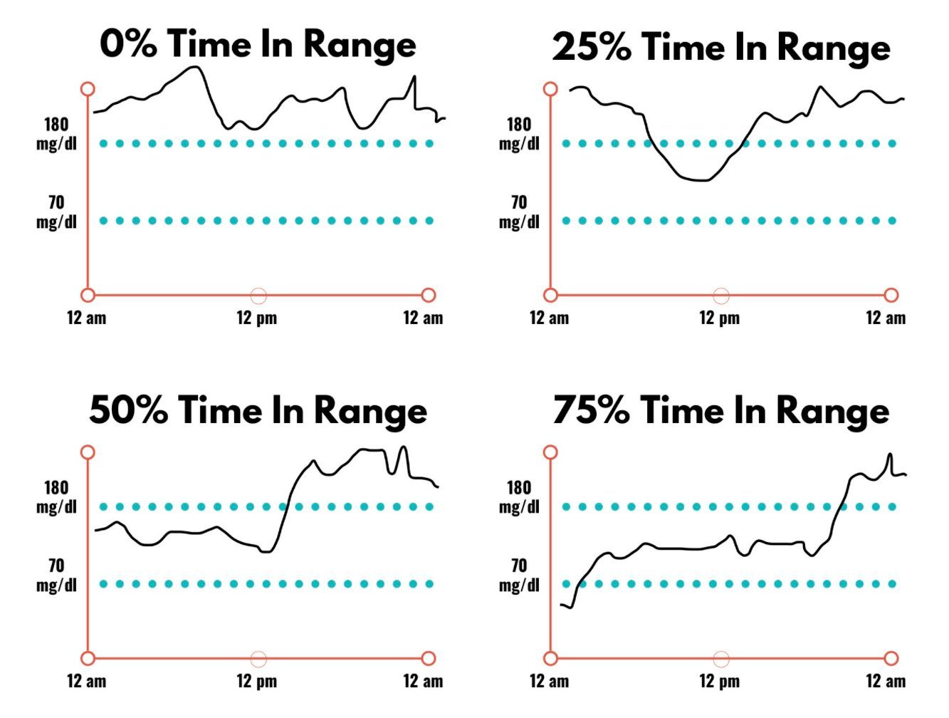 Using data from the landmark Diabetes Control and Complications Trial, researchers found a strong correlation between varying levels of time in range and the complications of diabetes such as retinopathy, neuropathy, nephropathy, etc. There was a correlation between an increase in time in range and a decrease in complications.