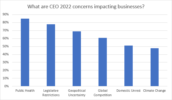 What are CEO concerns impacting their businesses in 2022?